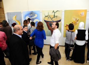 المعرض الذي أقيم في مبنى معهد الموسيقا تضمن 34 لوحة فنية 20 لوحة منها من أفكار يتلقاها طلاب كلية العمارة والباقي عبارة عن لوحات لأعمال تاريخية عن سورية وآثارها إضافة إلى لوحة كبيرة بقياس 6 أمتار تضمنت بعض المعالم الأثرية في سورية كالمسجد الأموي وكنيسة صيدنايا وآثار أفاميا وبصرى وغيرها.
