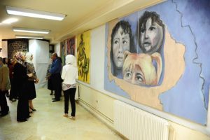 وشاركت الطالبة شانتال النحاس بلوحة من القياس الكبير بعنوان “الرقصة” معبرة من خلالها عن السلام من خلال فن رقص الباليه وهي عبارة عن دمية تخرج من الصندوق وتتراقص على أنغام الموسيقا مستخدمة اللونين البرتقالي والأحمر وتدرجاته للتعبير عن الحياة والقوة.