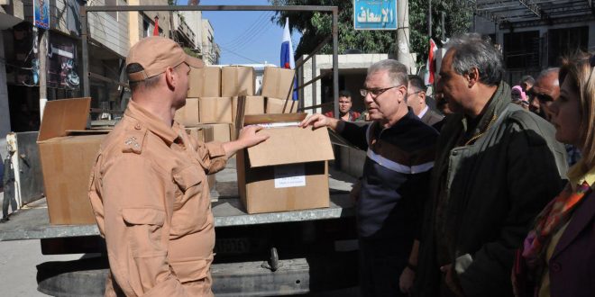 في إطار المساعدات الروسية للسوريين لمواجهة آثار الحرب الإرهابية على سورية والإجراءات القسرية أحادية الجانب لواشنطن والغرب وبعض الدول الإقليمية سلمت روسيا الاتحادية مساعدات طبية إلى 3 مشافي في مدينة حمص.