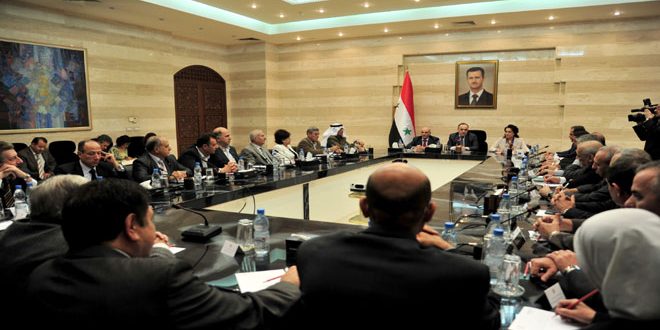 استمرارا للقاءات النوعية التي تعقدها الحكومة مع جميع مكونات المجتمع لتطوير العمل ودعم تكامليته في ظل الظروف الحالية وبهدف زيادة الفعالية والارتقاء بأداء الطيف المهني السوري إلى مستوى الظروف والتحديات التي فرضتها الحرب السوداء على البلاد حدد اجتماع العمل الموسع برئاسة المهندس عماد خميس رئيس مجلس الوزراء مع رؤساء المنظمات الشعبية والنقابات المهنية السبل والطرق الأفضل لإدارة المكونات البشرية والمادية لتكون الذراع المساعد لعمل الحكومة في إعادة عجلة الإنتاج وإعمار البلد.