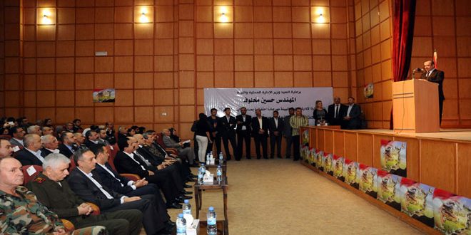 بمناسبة اليوم الوطني للبيئة اقامت وزارة الادارة المحلية والبيئة اليوم احتفالا مركزيا في المركز الثقافي بالميدان بالتعاون مع مديريات البيئة في محافظات دمشق وريفها والقنيطرة ومشاركة عدد من المنظمات الشعبية تحت عنوان ” لنتعاون معا… من اجل بيئتنا”.