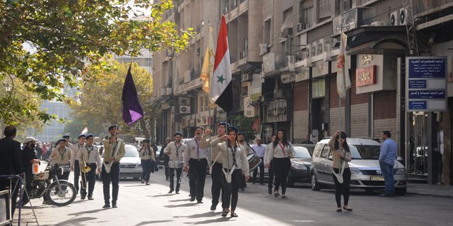 نفذت وزارة الادارة المحلية والبيئة بالتعاون مع محافظة دمشق وعدد من النقابات والمنظمات والجمعيات الاهلية وبمناسبة اليوم الوطني للبيئة فعالية بعنوان ” معا من أجل بيئتنا” بدأت من ساحة المحافظة وصولا إلى ساحة عرنوس .