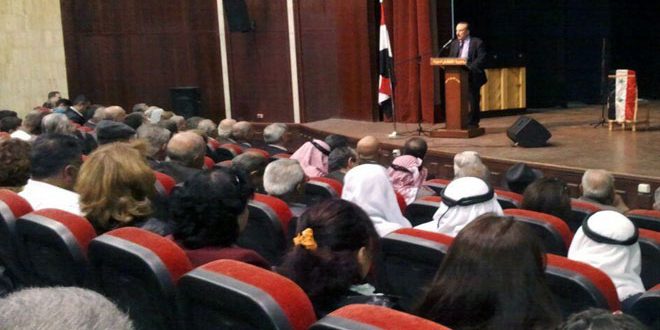 بدوره أشار عضو قيادة فرع السويداء لحزب البعث العربي الاشتراكي يحيى الصحناوي في كلمة احزاب الجبهة الوطنية التقدمية إلى أن الحرب الإرهابية الشرسة التي تتعرض لها سورية بقيادة قوى الاستعمار العالمية هدفها النيل من مواقف سورية الوطنية والقومية وزعزعة امنها واستقرارها.