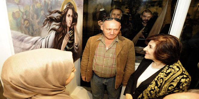 وأكدت الدكتورة بثينة شعبان المستشارة السياسية والإعلامية في رئاسة الجمهورية في تصريح صحفي على هامش المعرض أن الفنانين الموجودين عبروا من خلال لوحاتهم عن الحب والجمال والسلام “وسمعت منهم سر صمود الإنسان السوري وصمود مدينة حلب وإيمانهم بحضارتهم وعراقة الوطن وجماله”.