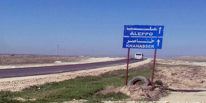 وقال المراسل..”إن طريق حلب -إثريا يشهد حركة سير اعتيادية وطبيعية ولا صحة للأخبار والشائعات التي تروجها بعض القنوات ومواقع التواصل الاجتماعي الشريكة في جريمة سفك الدم السوري عن قطع الطريق في منطقة خناصر”.