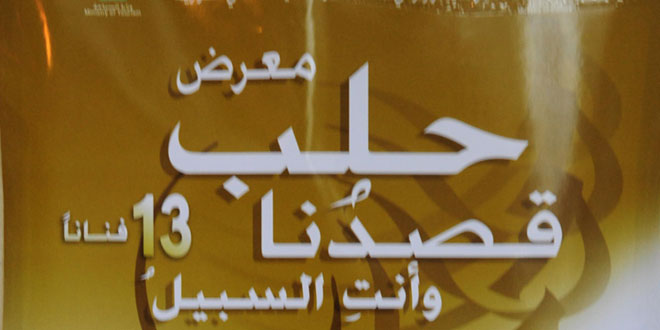 تكريما لحلب الشهباء سيدة الحب والضياء والمدينة الشامخة بقلعتها وأسوارها العتيدة وأسواقها العامرة إلى جانب مدارسها وجوامعها وكنائسها ومكتباتها التي غدت نبراسا يشع بألوان الفنون والآداب استضافت صالة ألف نون للفنون والروحانيات معرض “حلب قصدنا وأنت السبيل” بمشاركة 13 فنانا تشكيليا من مدينة حلب.