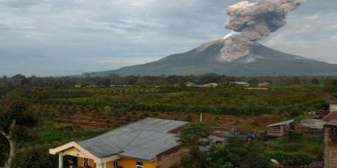 ثار بركان سينابونغ في مقاطعة سومطرة غرب اندونيسيا اليوم مطلقاً عموداً من الرماد وصل ارتفاعه الى 5ر1 كيلومتراً.