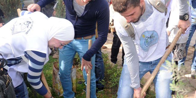 بمناسبة اليوم الوطني للبيئة نظمت جامعة دمشق بالتعاون مع الاتحاد الوطني لطلبة سورية اليوم حملة تطوعية بيئية شارك فيها اكثر من “200” طالب وطالبة وذلك في كلية الآداب والعلوم الانسانية.