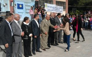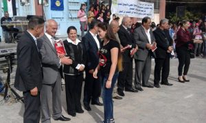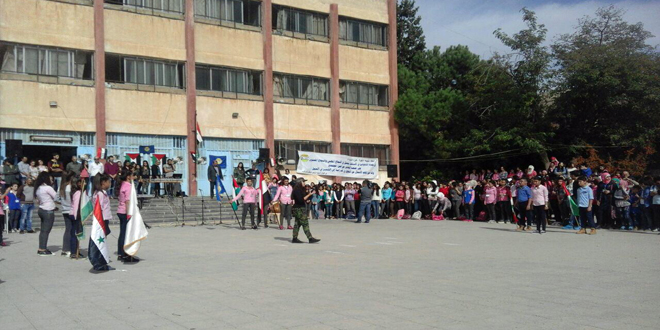 نظمت رابطة الشهيد سليمان عبد الدين في فرع اتحاد شبيبة الثورة بالسويداء حفلا فنيا اليوم بمناسبة أعياد تشرين بمشاركة فعاليات أهلية وحزبية وذلك في مدرسة الشهيد توفيق مزهر بمدينة السويداء.