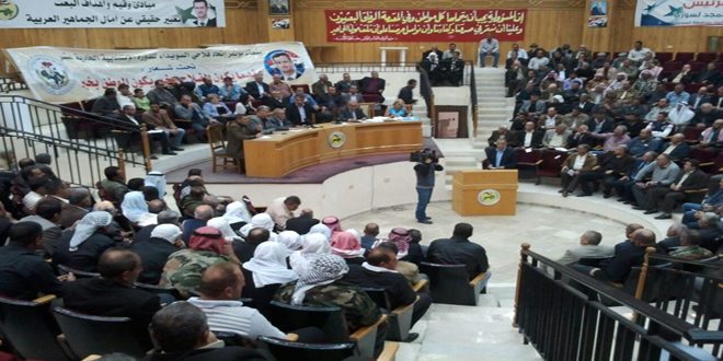 حضر أعمال المؤتمر عضوا قيادة فرع السويداء لحزب البعث العربي الاشتراكي رئيس مكتب الفلاحين صلاح النبواني ورئيس مكتب التنظيم خالد كرباج.