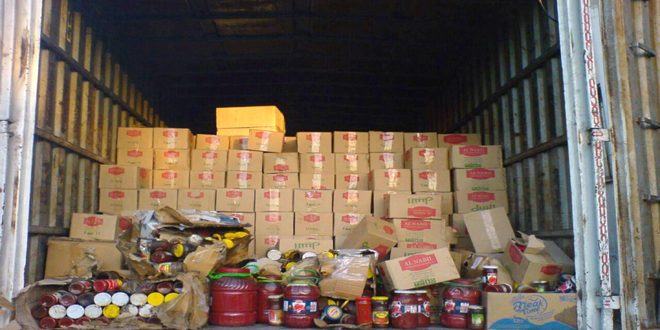 وذكر رئيس الضابطة في تصريح لمراسل سانا إن إحدى دوريات الجمارك “ضبطت داخل شاحنة قرب مفرق بلدة قطينة 16300عبوة غذائية متنوعة الأحجام بعضها مهرب والبعض الآخر من إنتاج محلي ومنتهي الصلاحية”.