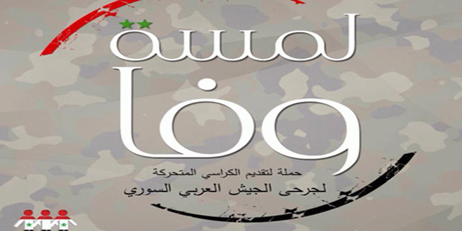 وأوضح رامي الحلبي رئيس مجلس إدارة الجمعية لنشرة سانا الشبابية أن “الحملة تتضمن زيارات لجرحى الجيش العربي السوري في محافظة حماة وريفها للاطمئنان على أحوالهم وتقديم المستلزمات الطبية والعلاجية لهم ولا سيما الكراسي المتحركة” لافتا إلى أنه سبق للجمعية أن نفذت العديد من الفعاليات المماثلة ضمن الحملة ذاتها في كل من محافظات اللاذقية وطرطوس والسويداء .