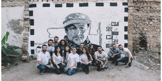 مشوار عمل وتأسيس الجدارية مر بعدة مراحل أولها تحضير الجدار ودهنه باللون الأبيض الخالص وإنجاز لإطار ورسم البورتريه للشخصية المختارة بقلم الرصاص على حد قول يارا صقور عضو اللجنة الإعلامية في الفريق والتي لفتت إلى أن المشرفين اختاروا للجدارية لوني الأبيض والأسود مع تدرجات رمادية برزت فيها مساحات الظل والنور والتقنيات اللونية المتميزة التي زادت من جمالية العمل.