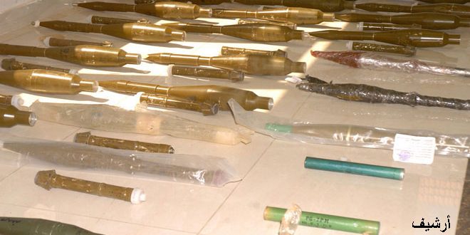 وضبطت الجهات المختصة أول أمس في إطار العمليات المتواصلة بالتعاون مع الجيش لقطع خطوط إمداد الإرهابيين شحنتين من الاسلحة والذخائر في ريفي حماة الشمالي وادلب الجنوبي تحتويان على قذائف هاون وأكثر من 45 ألف طلقة متنوعة للأسلحة الخفيفة وكميات من طلقات بنادق الية ورشاشات ال “بي كي سي” ودوشكا وبنادق آلية وقاذف “ار بي جي”.