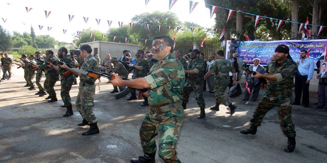 وعاهد الخريجون الذين بلغ عددهم نحو 140 خريجا أن يكونوا الجند الأوفياء يقاتلون خلف الجيش العربي السوري حتى يتم اجتثاث الإرهابي وإعادة الأمن والاستقرار إلى جميع ربوع الوطن.