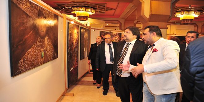 وأضاف وزير الثقافة “إن لوحات المعرض تشكل خصوصية لصاحبها في المستقبل وإن أهمية المعرض تكمن في أنه اختار عنصرا معينا وهو المرأة الموجودة في كل لوحاته التي انطلق منها إلى عوالم وآفاق متسعة وممتدة إلى ما لا نهاية حيث تحتوي لوحاته تأكيدا على الهوية السورية وتاريخنا وحضارتنا وتراثنا”.