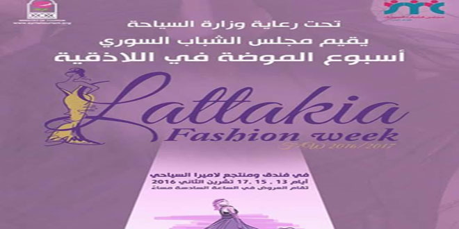 ينظم مجلس الشباب السوري بالتعاون مع وزارة السياحة “أسبوع الموضة” في اللاذقية خريف شتاء 2016-2017 أيام 13 و15 و17 الجاري في منتجع لاميرا السياحي بالمحافظة.