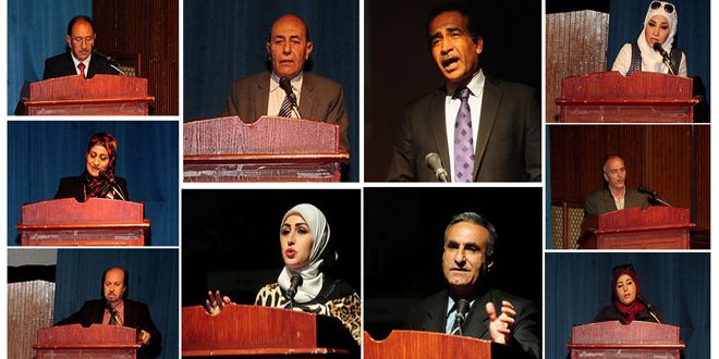 وألقى الشاعر محمد سعيد العتيق قصيدة بعنوان “الكون المسافر” عبر فيها عن رؤيته في الكون والحياة وفق النزوع الذاتي الذي جمع فيه ما يروق له من خبرات ثقافية فقال .. أصوات باصرتي ينأى بها الصمت .. كالليل مغتربا يغتاله الكبت ..داعبت مرآته السوداء من أرق .. لأستعيد شروق الشمس فارتبت ..في نهر وجهي أخاديد أرممها .. و وجه طيفك لا شكل و لا سمت.