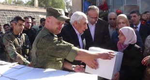 وأشار ممثل مركز التنسيق الروسي في حميميم العقيد الكسي ايفانوف إلى أن المساعدات الإنسانية تعبير عن وقوف روسيا حكومة وشعبا إلى جانب الشعب السوري في حربه ضد الإرهاب مبينا أن المساعدات تتضمن 200 سلة غذائية.