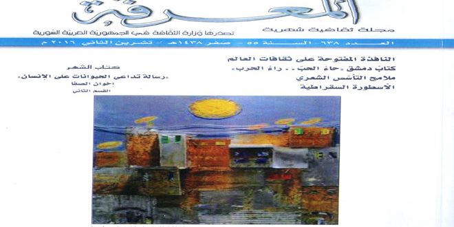 تضمن عدد تشرين الثاني من مجلة المعرفة الشهرية الصادرة عن وزارة الثقافة دراسات في التاريخ والأدب والموسيقا والتراث ونصوصا شعرية وقصصية وقراءات في كتب إضافة إلى كتاب المعرفة الشهري ونافذة على الاصدارات الجديدة.
