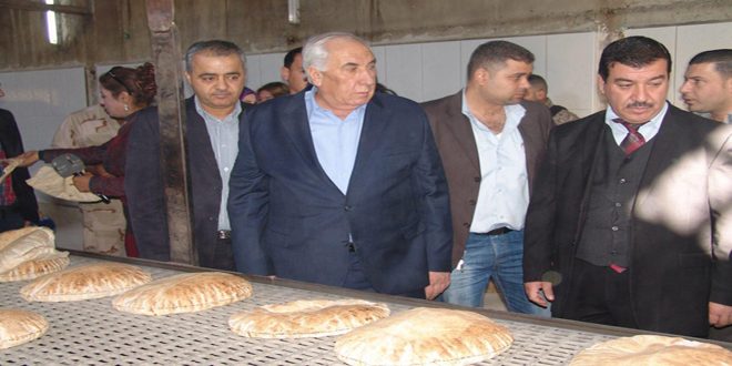 إطلع محافظ درعا محمد خالد الهنوس على واقع انتاج الدقيق في مطحنة اليرموك في مدينة درعا ومخبزها الأول وذلك بعد قرار وزارة التجارة الداخلية خفض نسبة استخراج النخالة من القمح.