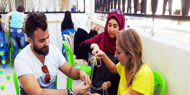 تعمل مبادرة ورق وخيطان التي ينفذها حاليا فريق “أفلاتين القنجرة” بمحافظة اللاذقية على تعليم أصول فن “المكرما” الذي يعتمد على ربط الخيوط والحبال وتشكيلها جماليا بطريقة فنية مبتكرة بحيث يستفيد من المبادرة مجموعة كبيرة من السيدات والشباب ومدربي فرق ومجموعات تطوعية متنوعة إلى جانب شباب من ذوي الاحتياجات الخاصة بهدف تمكينهم من أسس هذا الفن وتعليمهم مفاهيم مرتبطة بإعادة التدوير والاعتماد على خامة الورق لتحويلها إلى اكسسوارات ومنتجات مفيدة.