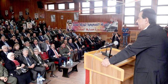 وأكد عضو قيادة فرع القنيطرة لحزب البعث العربي الاشتراكي طعمه الأحمد أن الحركة التصحيحية اسهمت في إقامة نموذج للدولة الوطنيةالحاملة للمشروع القومي العربي الذي يتصدى بشجاعة للمشاريع الصهيونية والامبريالية لافتا إلى الانتصارات الميدانية التي يحققهاالجيش والقوات المسلحة في مواجهة الارهاب.