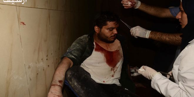 وأفاد مراسل سانا في حلب بأن “أحد عمال النظافة أصيب خلال قيامه بعمله في حي الحميدية برصاصة قناص بالكتف أطلقتها التنظيمات الإرهابية المتمركزة في المدينة القديمة بحلب”.