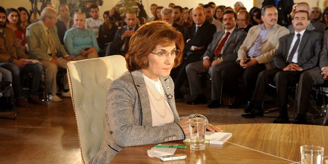 لقاء حواري مع الدكتورة بثينة شعبان في قاعة المؤتمرات بجامعة دمشق