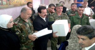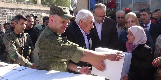 من جهته أوضح ممثل مركز التنسيق الروسي في حميميم العقيد الكسي ايفانوف أن “سورية وروسيا تبذلان جهودا مشتركة لمواجهة الإرهاب” مشيرا إلى أنه “في الوقت الذي غزا فيه الإرهاب الدولي القرى والبلدات السورية وانتشر الألم بفعل هذا الإرهاب وطال آلاف العائلات السورية فإن الذين وقفوا إلى جانب الشعب السوري قليلون وفي مقدمتهم الحكومة والشعب الروسي”.