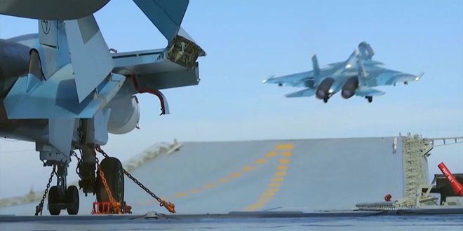 يشار إلى أن وزير الدفاع الروسي سيرغي شويغو اعلن يوم الثلاثاء الماضي أن “القوات الروسية المشاركة في الحرب على التنظيمات الارهابية التكفيرية بدأت بمشاركة حاملة الطائرات الأميرال كوزنيتسوف الموجودة قبالة السواحل السورية شن ضربات مكثفة على مواقع تنظيمي داعش وجبهة النصرة في سورية”.