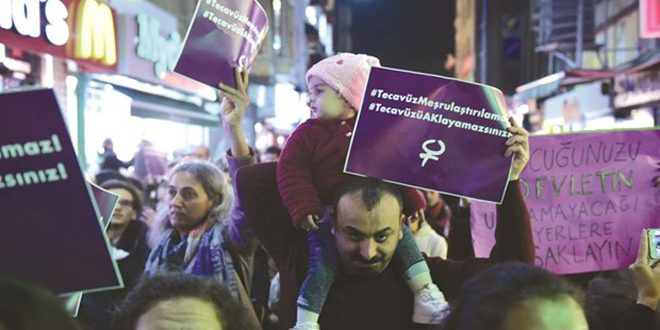 تظاهر آلاف الأتراك بينهم نساء وأطفال في اسطنبول اليوم احتجاجا على مشروع قانون مثير للجدل قدمته حكومة حزب العدالة والتنمية الاخواني للبرلمان التركي يقترح إبطال ادانة رجال باغتصاب قاصرات إن اقترنوا بضحيتهم.