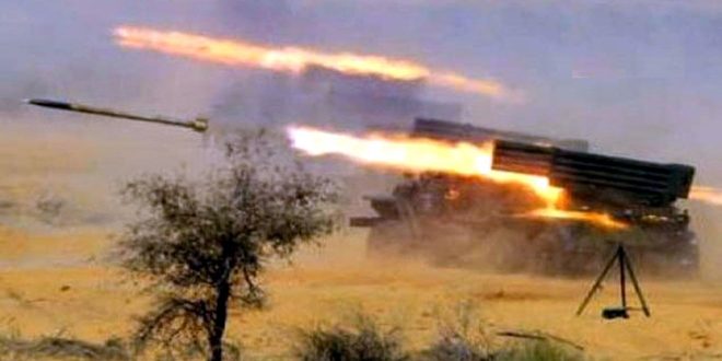 ووجهت وحدة من الجيش والقوات المسلحة رمايات نارية على تجمعات وآليات لتنظيم “داعش” المدرج على لائحة الإرهاب الدولية في ريف حلب الشرقي.