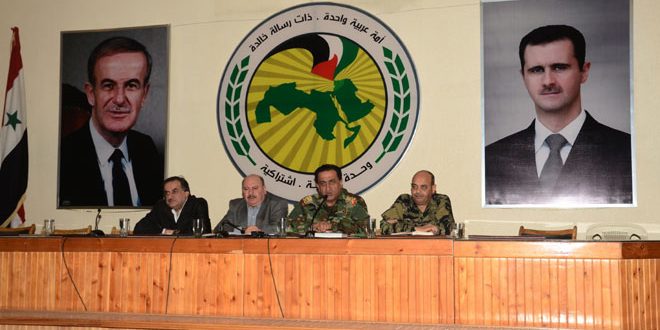 من جانبه لفت أمين فرع حلب لحزب البعث العربي الاشتراكي أحمد صالح إبراهيم إلى الدور المنوط بأعضاء مجلس الشعب والمخاتير لكونهم وجهاء اجتماعيين في أحيائهم وضرورة التواصل مع أهلنا في الأحياء الشرقية لعودتهم إلى حضن الوطن.