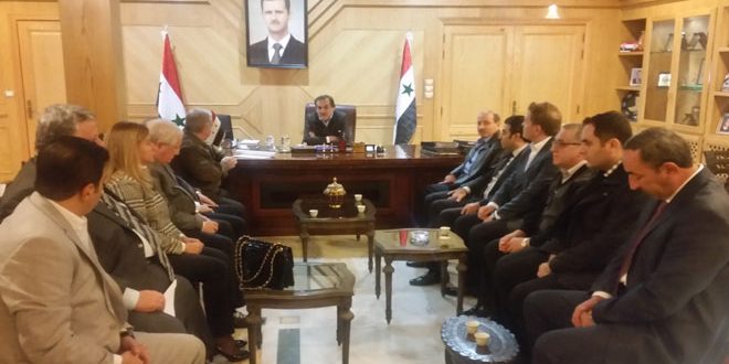 بحث محافظ حلب حسين دياب اليوم مع رئيس وأعضاء غرفة تجارة حلب الواقع الاقتصادي في المحافظة وأهمية تعزيز دور الغرفة بما ينعكس إيجابا على المواطنين وتأمين احتياجاتهم.
