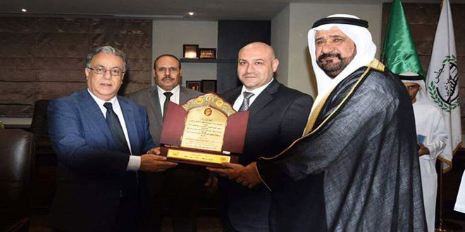 وقدم الأمين العام للمجلس السفير محمد محمد الربيع درع اليوبيل الذهبي بمناسبة مرور خمسين عاما على إنشاء مجلس الوحدة الاقتصادية العربية للراحل أبو الشامات وذلك خلال الاجتماع الخامس والأربعين للاتحادات العربية المشتركة الذي أقيم في إمارة الفجيره بدولة الامارات العربية المتحدة خلال الفتره ما بين 15 ولغاية 17 تشرين الثاني الجاري وذلك بمشاركة الرؤساء والأمناء العامين للاتحادات العربية المشتركة ورئيس وأعضاء مجلس غرفة تجارة الفجيرة.