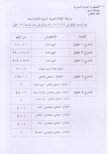 وأوضحت الوكالة في بيان لها اليوم أنه يمكن للمقبولين من المتقدمين إلى المسابقة من الفئتين الأولى والثانية الاشتراك بالمسابقة ومراجعة مبنى الوكالة بالبرامكة أو الاطلاع على موقع وكالة سانا الالكتروني للتعرف على توزيع المتقدمين على القاعات الامتحانية في كلية الحقوق.