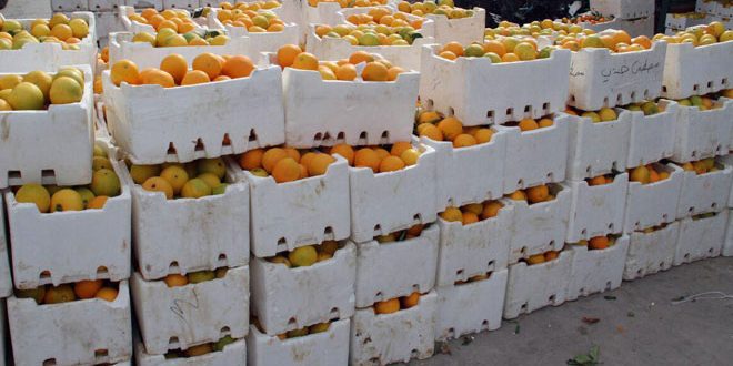 طرح فرع المؤسسة العامة للخزن والتسويق في محافظة درعا اليوم 780ر35 طنا من الحمضيات بسعر 75 ليرة للكيلو غرام الواحد من و 600 صحن بيض بسعر 1250 ليرة للصحن الواحد وذلك ضمن صالاته بمدينة درعا.