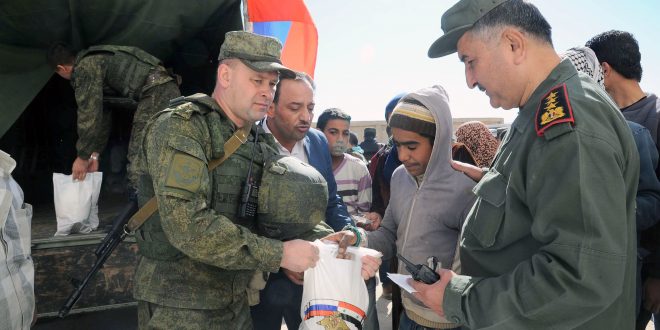 وقدمت روسيا خلال الفترات الماضية كميات كبيرة من المساعدات الإنسانية في عشرات البلدات بمختلف المحافظات السورية وقامت بتوزيعها بالتعاون والتنسيق مع الجهات المعنية في سورية لضمان وصولها إلى مستحقيها وعدم استيلاء الإرهابيين عليها ولا سيما أن المساعدات التي تحاول المنظمات الدولية إرسالها غالباً ما تستولي عليها التنظيمات الإرهابية.