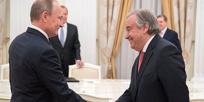 بدوره أكد غوتيريس أنه يدرك تماما الدور المحوري والحاسم لروسيا ليس فقط ضمن منظمة الأمم المتحدة وإنما في كل نواحي العلاقات الدولية لافتا إلى أن التمتع بعلاقة بناءة مع دول كروسيا يعتبر أحد متطلبات عمله كأمين عام للأمم المتحدة.