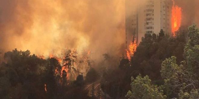 اندلعت اليوم حرائق كبيرة في مدينة حيفا الواقعة ضمن الأراضي الفلسطينية المحتلة عام 1948 وقامت على اثرها سلطات الاحتلال الإسرائيلي بإجلاء عشرات آلاف الأشخاص من عدة أحياء في المدينة.