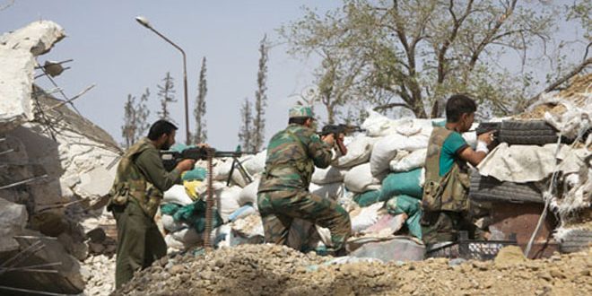 وقضت وحدات من الجيش أمس الأول على عدد من إرهابيي تنظيم “داعش” ودمرت 4 آليات وعربة مزودة برشاش ثقيل لهم في منطقة دير حافر نحو 52 كم شرق مدينة حلب.