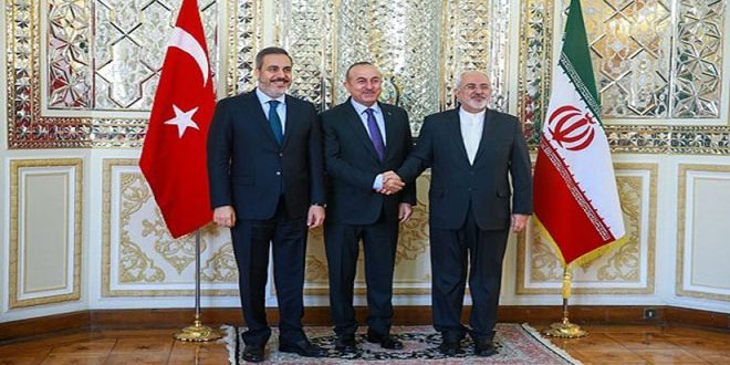 بدوره قال جاويش اوغلو: “إن الحفاظ على سيادة الأرض والوحدة الوطنية في سورية والعراق تخدم إيران وتركيا والسلام والاستقرار في المنطقة” مشيرا إلى دور إيران البناء في القضايا الدولية وضرورة إقامة السلام ومكافحة الإرهاب في المنطقة.