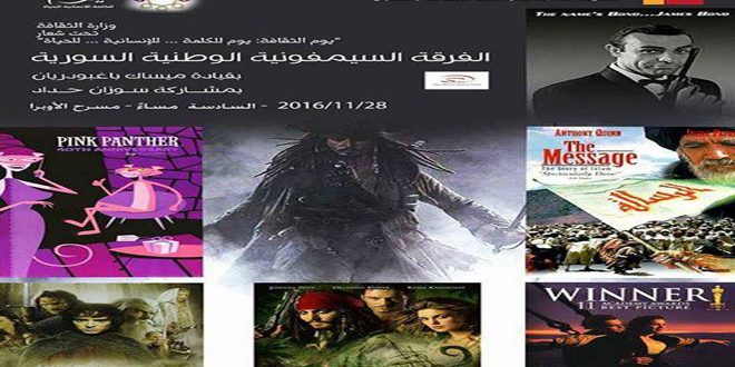 تحيي الفرقة السيمفونية الوطنية السورية بقيادة المايسترو ميساك باغبودريان أمسية موسيقية عند السادسة من مساء الغد على مسرح الأوبرا بدار الأسد للثقافة والفنون بدمشق تحت عنوان “موسيقا رأيناها” ضمن احتفالية يوم الثقافة التي تقيمها وزار الثقافة بمناسبة ذكرى تأسيسها.