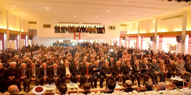 من جهته أكد الأمين القطري لحزب البعث العربي الاشتراكي في لبنان نعمان شلق أن “خطط العدو من خلال الحرب التي تشن على سورية ولبنان تتجه إلى غير ما رسمت له وها هو محور المقاومة الممتد من عاصمته دمشق العروبة إلى اقاصي المعمورة يشرف على إنزال علم القطبية العالمية الواحدة ليغدو محورا تترتب على معاييره شؤون العالم وسياسته ومصالح شعوبه”.