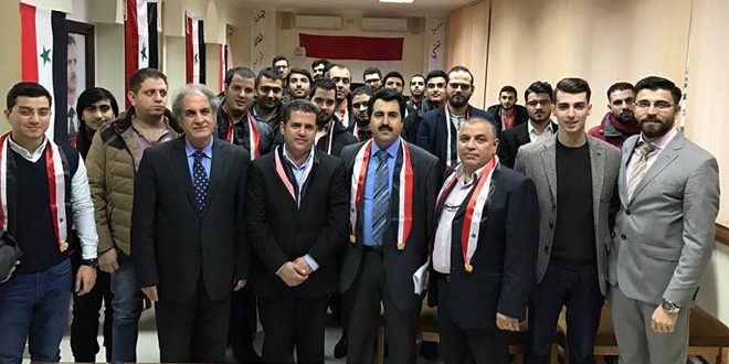من جهته أشار عمر الجباعي عضو المكتب التنفيذي للاتحاد الوطني لطلبة سورية إلى دور الاتحاد وسير العملية التعلمية رغم كل المحاولات الإرهابية التي حاولت إيقافها مؤكدا أن كل طالب سوري خارج الوطن هو سفير لبلاده.