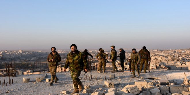 مع القوات الرديفة والحليفة نفذت خلال الساعات الماضية عمليات نوعية ودقيقة على تجمعات وبؤر التنظيمات الإرهابية في الاحياء الشرقية لمدينة حلب “وأعادت الامن والاستقرار بشكل كامل إلى حيي الحيدرية والصاخور”.