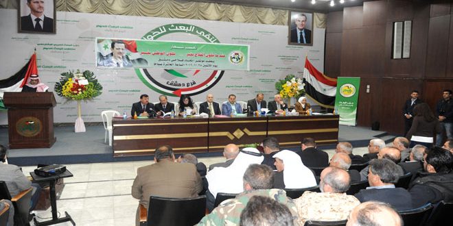 حضر المؤتمر أمينا فرع دمشق وريفها لحزب البعث العربي الاشتراكي وعدد من أعضاء قيادة فرع دمشق وريفها لحزب البعث وعضو المكتب التنفيذي للاتحاد العام للفلاحين خالد خزعل.