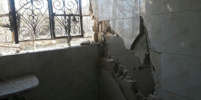 أضرار مادية بالممتلكات جراء استهداف الإرهابيين بقذيفة صاروخية قرية حضر بريف القنيطرة الشمالي