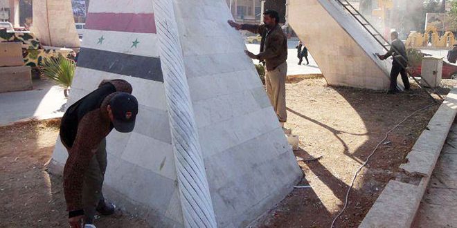 وبين رئيس مجلس المدينة بسام العفين أن الأعمال شملت تنفيذ حملة لتجميل الشوارع الرئيسية والساحات العامة من خلال طلاء الأرصفة ونصب لوحات تعبيرية وترميم المعالم البارزة في الساحات وإعادة تشغيل نوافير المياه.